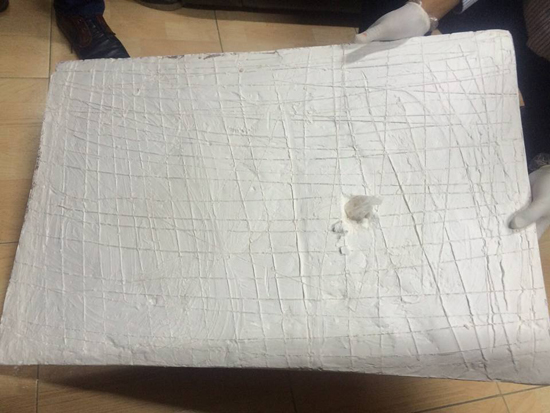 بالصور : احباط تهريب مخدرات بلوحه جبصينية من الاردن الى السعودية