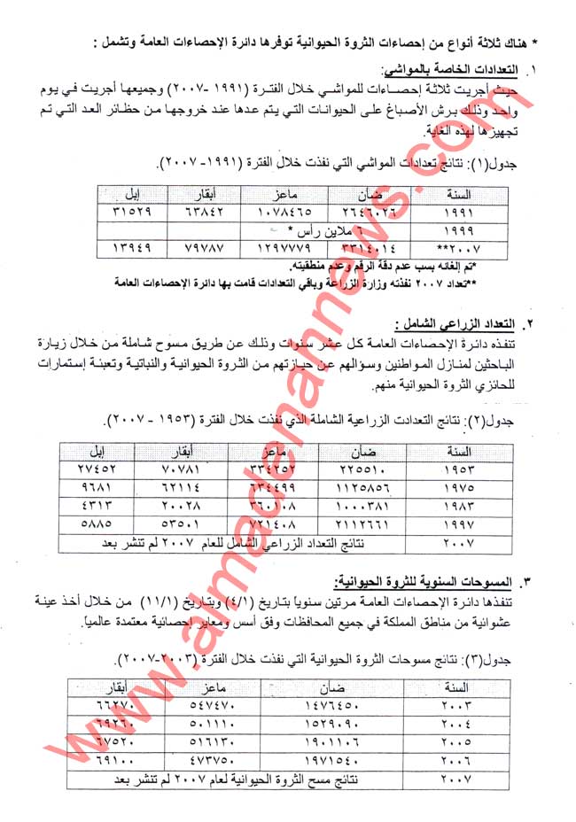 وستلاحظون أن أرقاما تم إلغاؤها بدعوى ( عدم المنطق ) وستقرأون في الوثيقة المنشورة كيف أن الدائرة كانت تأخذ عينات عشوائية وتعممها على مختلف محافظات المملكة ، مما يعني أننا وحتى العام 2007 ، وهو العام الذي أجرت فيه وزارة الزراعة أول إحصاء لها للمواشي ، كنا نعيش في العصر الحجري ولا نعلم ولا ندري ماذا لدينا من ثروات حيوانية بالمرة .