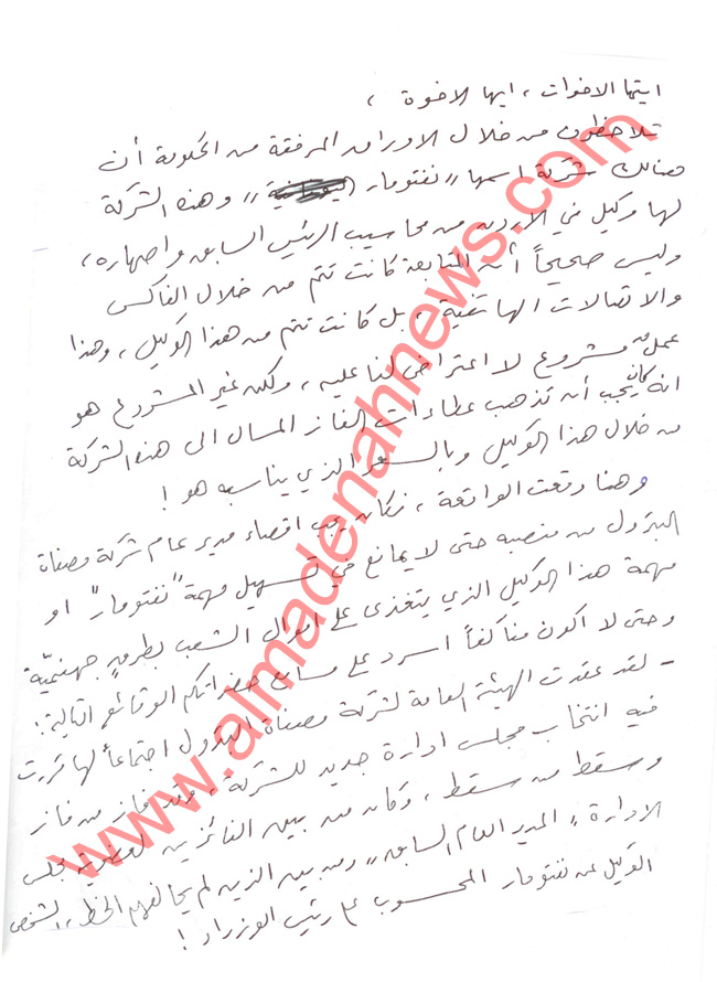 المدينة نيوز – خاص وحصري وبالوثائق - : لا تقف قضايا المصفاة عما تعلمون ونعلم ، ولا عند محكمة أمن الدولة أو المحكمة التي طالب بتدخلها محامو الدفاع من اجل إطلاق متهمي المصفاة بالكفالة ، بل يتعدى الامر إلى فضائح تزكم الأنوف في المصفاة بحسب النائب السابق عبد الكريم الدغمي وهي الفضائح التي لم تحرك أحدا ولم يفعل بها أحد شيئا ، وذهب تعب الدغمي وصراخه تحت القبة أدراج الرياح .