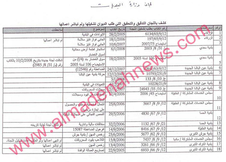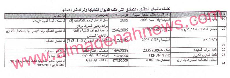 المدينة نيوز – خاص وحصري وبالوثائق – إقرأوا هذه الاوراق التي حصلنا عليها ، هي غير الاوراق التي نشرناها عن توصيات ديوان المحاسبة التي ذهبت مع الريح وما حد رد عليها ، بل هي توصيات بتشكيل لجان ، الوثائق الأولى كانت تتحدث عن قرارات لجان لم تنفذ ، أما الآن فنتحدث عن قرارات بتشكيل لجان والنتيجة أن هذه اللجان لم تشكل بالمرة .