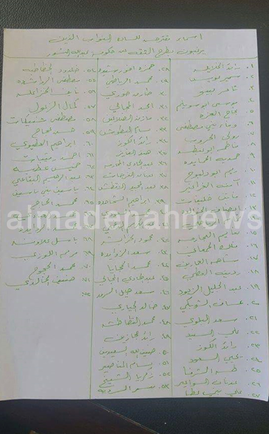 المدينة نيوز :- وصل "المدينة نيوز" الجمعة نسخة ورقية لأسماء النواب الذين يرغبون بطرح الثقة في حكومة الدكتور عبد الله النسور.