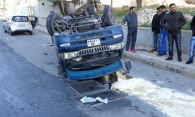 بالصور : انقلاب " باص صغير " في وادي صقره بسبب الانجماد