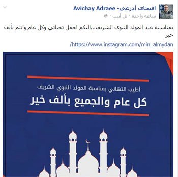 رواد فيس بوك يهاجمون أفيخاى أدرعى بعد تهنئته للمسلمين بالمولد النبوي