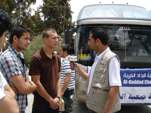 المدينة نيوز - خاص - قامت جمعية البداد الخيرية ظهر هذا اليوم الاحد الموافق 6-6-2010 بتسيير حافلة عمرة الى الديار المقدسة مكونة من 47 طالبا من مختلف الجامعات الاردنية الرسمية، وذلك لاداء مناسك العمرة .وتعد هذه الرحلة امتداد لمجموعة من رحلات العمرة التي تقوم الجمعية بتسييرها بشكل سنوي.اضافة الى مجموعة من الاعمال الخيرية التي تقدمها جمعية البداد الخيرية للمحتاجين ، وسيكون هذا العام كما هو معتاد اقامة الخيمة الرمضانية التي تقدم وجبات افطار للصائمين وطرود الخير التي توزع في جميع محافظات المملكة على الاسر العفيفة.