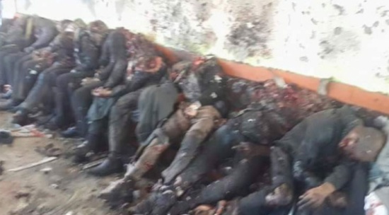 المدينة نيوز :- نشرت مواقع تتبع ميليشيات الحشد الشعبي مساء الإثنين، صوراً لقتلى تفجير المقدادية الانتحاري الذي نفذه تنظيم "داعش" ظهر الإثنين مستهدفاً بيت عزاء أقيم في المنطقة، حيث تمكن الانتحاري الذي يرتدي حزاماً ناسفاً من الدخول إلى بيت العزاء وتفجير نفسه فيه مخلفاً 38 قتيلاً بينهم 6 من قادة الحشد الشعبي الذين كانوا متواجدين في بيت العزاء وفقاً لما أورده مراسل قناة الجزيرة في بغداد.