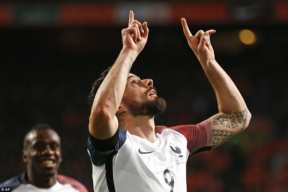 وبعد مرور زمن مماثل، ضاعف مهاجم أرسنال الإنكليزي أوليفييه جيرو غلّة الفرنسيين بعد ركلة ركنية وتمريرة رأسية من بليز ماتويدي (13).