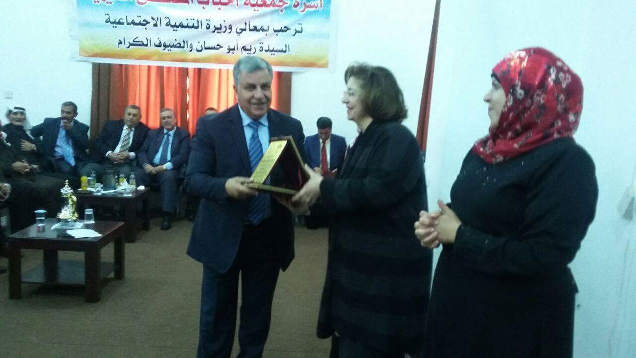 والقى كلمة المجتمع المحلي محمد الجزازي حيث رحب بالوزيرة وبين اهمية الجمعية في تقديم الخدمة لهذه الشريحة وطالب الوزارة بدعم الجمعية خاصة انها تنوي استحداث صفين لاستيعاب الاعداد المتزايدة من المعاقين في القضاء .