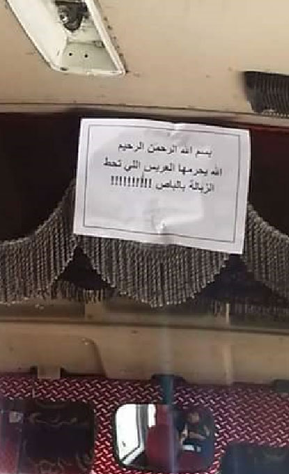 سائق باص عمومي يعلق لافتة عن الفتيات اللواتي يركبن معه ( شاهدها في الداخل )