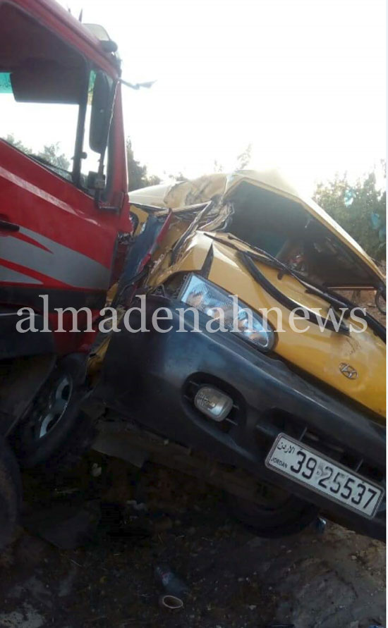 وفي التفاصيل ، اصطدم " قلاب " قادم من مدينة اربد بمركبة ثانيه " باص " مما أدى الى انقلابه ، على طريق ثغرة عصفور .
