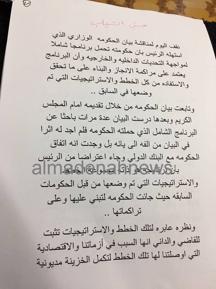 لقراءة كلمات النواب نصاً ليوم الأحد ... انقر هنا