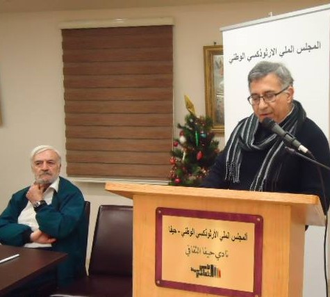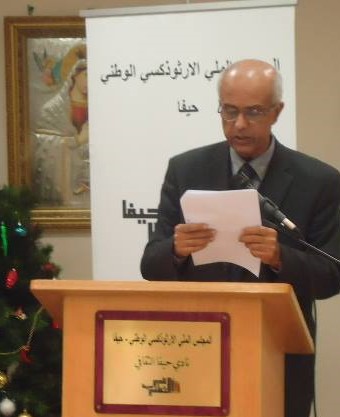 مداخلة مفيد صيداوي بعنوان الأدب يعيد الحيويّة والروح للإنسان: في هذا اللقاء الأدبيّ الثقافيّ، وفي هذه الأيّام التي نستقبل بها جميعًا عيد الميلاد المجيد، أتقدّم لكم جميعًا بأحرّ التهاني القلبيّة بهذه المناسبة، فهذه هي الثقافة الفلسطينيّة الحقيقيّة التي تربّينا عليها، نحتفل جميعًا من كل الطوائف بأعياد جميع الطوائف، رغم أنّ هناك مَن يقف في زاوية معتمة مظلمة، من عهود ليست عهودنا بل مستوردة، يريد أن يمنع هذه التقاليد العريقة الرائعة في تاريخ وحضارة شعبنا، ولكنّنا نقول من هنا من قاعة الكنيسة الثقافيّة التي تحتضننا جميعًا، بأنّهم سيفشلون فشلًا ذريعًا، لأنّه في هذه الساعة بالذات تحتفل جمعيّة السلام في قاعة مسجد السلام في الناصرة أيضًا بعيد الميلاد المجيد، ونهتف هنا في حيفا وفي الناصرة، "المجد لله في الأعالي وعلى الأرض السّلام وفي الناس المَسرّة"، الناس كلّ الناس.