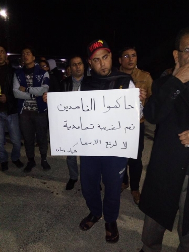 وقال هؤلاء الذي انطلقوا ليل الأحد - الإثنين من مسجد ذيبان إلى الدوار بإسقاط حكومة " الفساد ورفع الأسعار " .