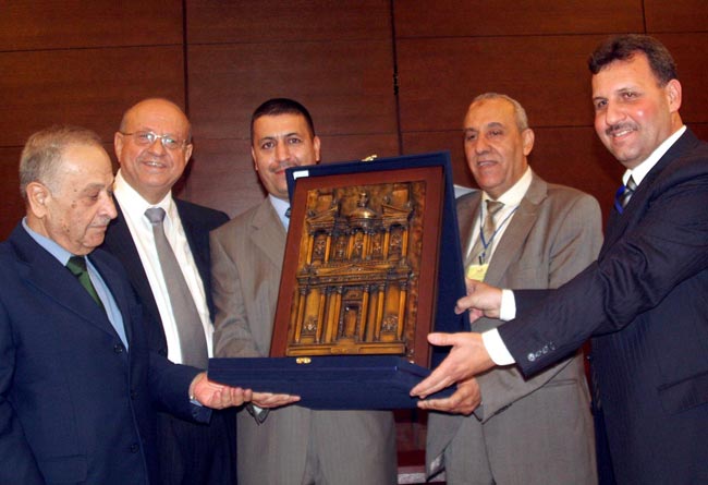وفي نهاية الحفل قام رئيس اتحاد الناشرين الاردنيين ومندوب وزير الثقافة بتسليم الدروع للشاعر حيدر محمود ولممثلي دور النشر المكرمة في المعرض الذي يقيمه اتحاد الناشرين بالتعاون مع وزارة الثقافة وامانة عمان الكبرى.
