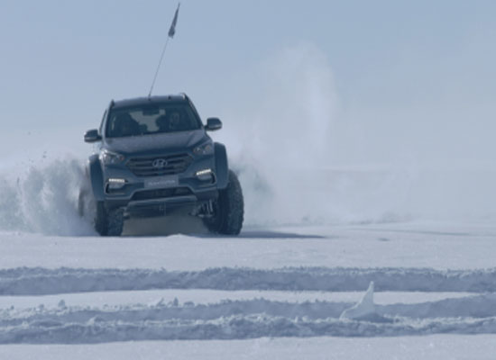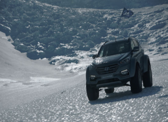 وشهدت الحملة التي استمرت 30 يوماً قيام سيارة من طراز سنتافي، التي يتم إنتاجها على نطاق تجاري واسع، وبعد أن خضعت لتعديلات طفيفة جعلتها تتناسب مع إطارات عملاقة ذات ضغط منخفض، بقطع مسافة تقرب من 5,800 كيلومتر من التضاريس الجليدية في ظروف بالغة الصعوبة؛ إذ كان على المركبة قطع مسافات كبيرة في درجات حرارة شديدة الانخفاض تتدنى إلى 28 درجة مئوية تحت الصفر، علاوة على رسم مسارات جديدة على قطع جليد عائمة لم يسبق لأحد من قبل أن عبرها على متن مركبة ذات عجلات.