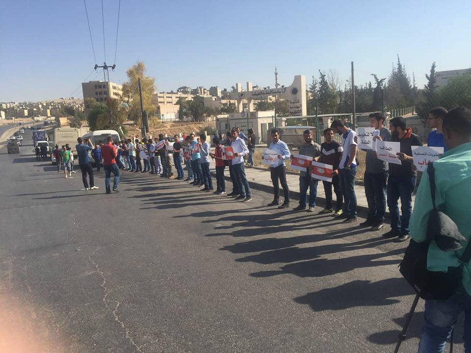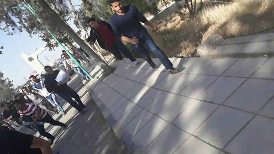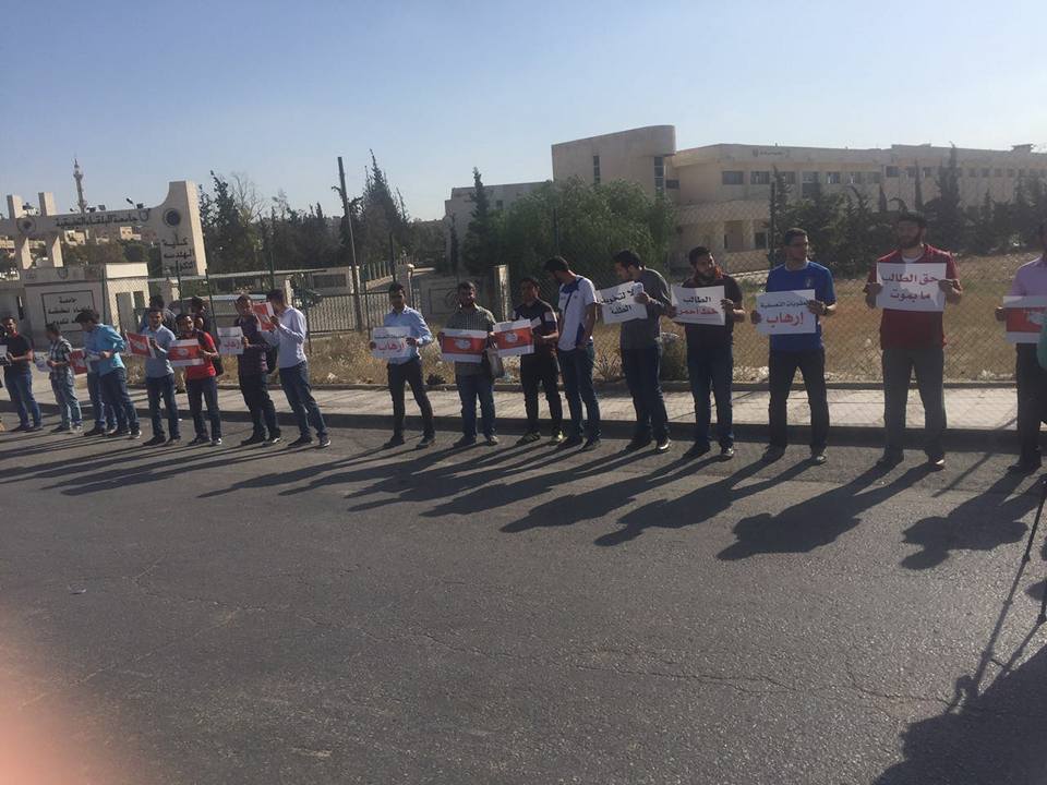 فوجئنا اليوم وبالتزامن مع تنظيم وقفة نظمتها مختلف الجامعات نصرة لقضيتنا ؛ قيام عناصر من الامن الجامعي بالاعتداء على الطلاب بشكل عنيف ؛ حيث قدم الطلاب المعتصمون داخل الجامعة الى البوابة الرئيسية لتحية من جاءهم من الطلبة الاخرين ؛ وعند رجوعهم الى ساحة الاعتصام شكل الامن حائط صد لمنعهم من الرجوع مع حملهم للعصي ؛ ثم قاموا بالاعتداء علينا بشكل وحشي لدفعنا للخروج الى خارج الجامعة مما اوقع بيننا اصابات بليغة ..