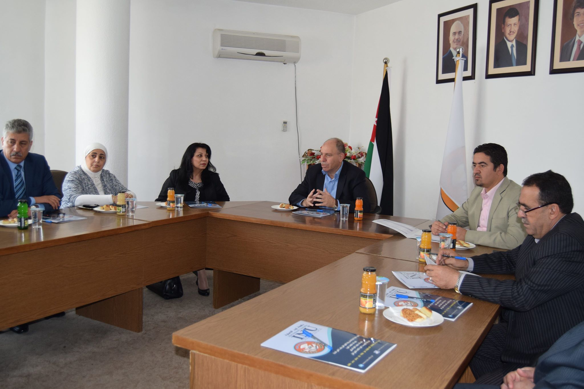 حضر اللقاء الأستاذ الدكتور أيمن الأحمد عميد كلية الآداب، والأستاذ الدكتور خليل الدليمي/ كلية العلوم الإدارية والمالية، والدكتور رضوان بطيحة نائب عميد شؤون الطلبة، والدكتور خليل بدر البطاينة / مدير دائرة المكتبة، والدكتور محمد عتوم/ كلية العلوم وتكنولوجيا المعلومات والتمريض، والدكتور أحمد أبو الهيجاء/ كلية العلوم الإدارية والمالية، والسيد أحمد عتوم مدير دائرة العلاقات العامة والإعلام، والآنسة سهاد الكردي مديرة مكتب هيئة المديرين وأمينة سر مجلس الأمناء في الجامعة.