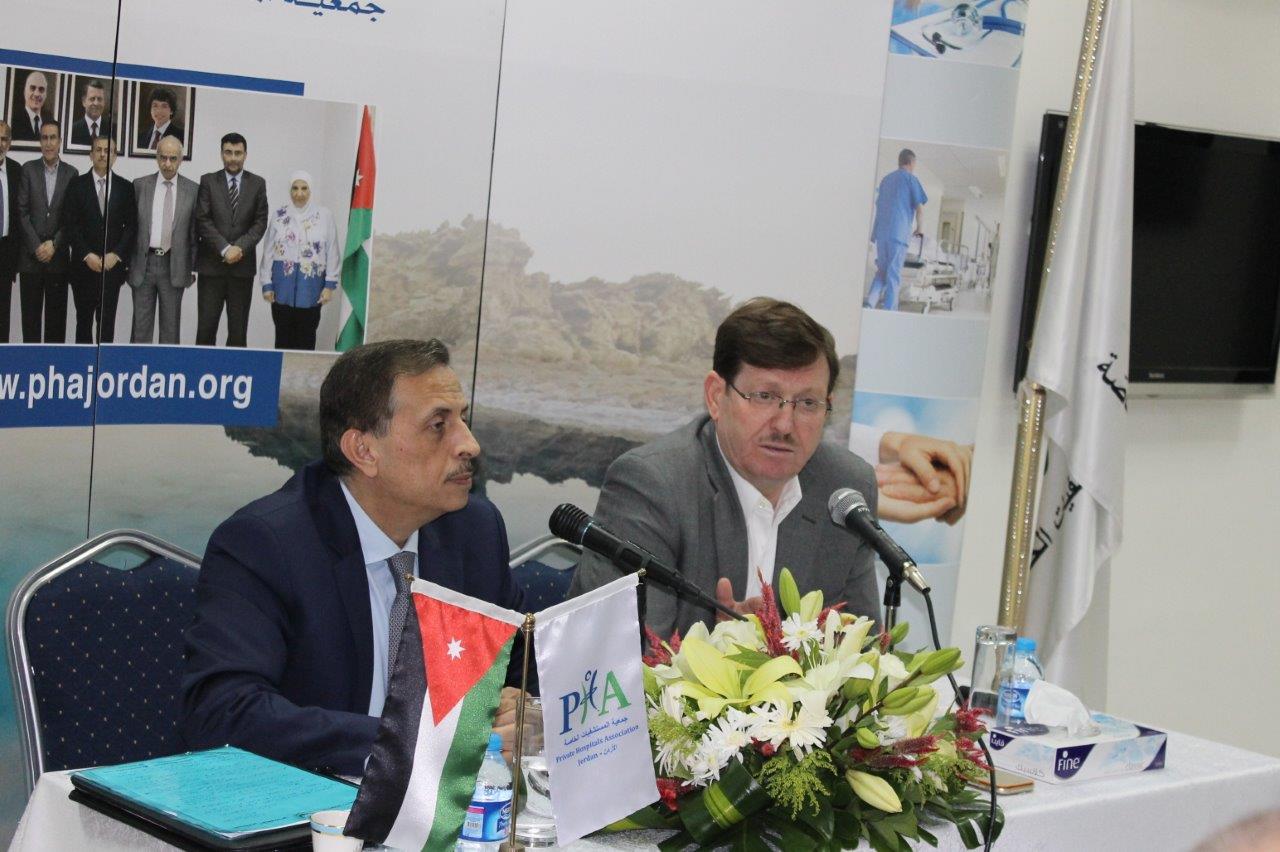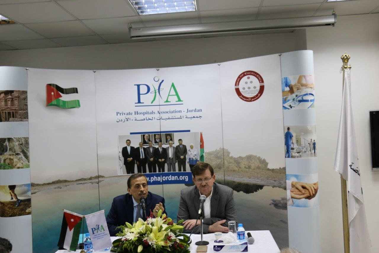 من جانبه ، رحّب رئيس جمعية المستشفيات الخاصة الدكتور فوزي الحموري بوزير الصحة واعتبر أن هذه اللقاءات بين الحكومة وممثلي القطاع الخاص تكتسب أهمية قصوى لدراسة أوجه التعاون ، وتذليل العقبات التي تُواجِه قطاع المستشفيات الخاصة الذي يمر بظروف صعبة لأسباب عديدة داخلية وخارجية أدت إلى تراجع السياحة العلاجية ومن أسبابها الأوضاع الأمنية والسياسية والاقتصادية التي تمر بها بعض الدول العربية ، بالإضافة إلى قيام الحكومة الأردنية بتقييد عدد من الجنسيات العربية واشتراط الحصول على تأشيرة مُسبقة للمرضى الراغبين بالعلاج في المملكة مما أدى تَحوُّل عدد كبير من هؤلاء المرضى إلى دول منافسة مثل تركيا وتونس ومصر والهند ، ودعا الحكومة إلى إعادة النظر في الإجراءات الخاصة بمنح التأشيرات حتى نحافظ على مكانة الأردن كمركز أول للعلاج على مستوى الإقليم .