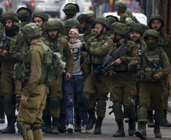 المدينة نيوز :- حظيت صورة طفل فلسطيني مقيد اليدين ومعصوب العينين ومحاط بـ20 جندياً إسرائيلياً بتداول واسع على شبكات التواصل الاجتماعي