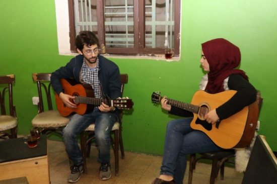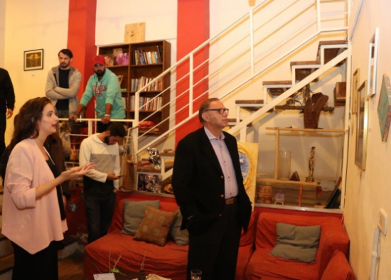 المعرض الذي جاء على أصوات الموسيقى، وفي مركز جدل ذو الجذور الشامية في البناء حيث "أرض الديار.. والبحرة (النافورة)"، ما يدل على حضور المكان ودلالته في استثمار فضاء التعبير المتوفر وهو على انواع، حيث من يقرأ في غرفة مخصصة لذلك، أو يمارس العزف والغناء أيضا في مكانه الاخر حيث الخصوصية.