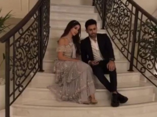 أسيل عمران اختارت فستاناً ناعم التفاصيل، جاء تصميمه بانسيابية من طبقات الشيفون المتدلية والمطعمة برسومات ورود صغيرة بيضاء من "التل"، مع تزيين منطقة الصدر بـ "فيونكة" كبيرة لافتة.