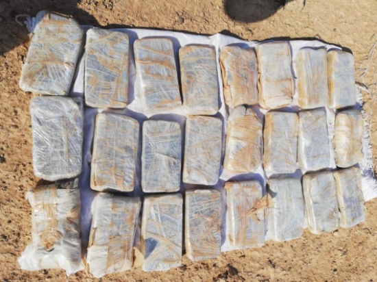 وفي سياق متصل وبناء على المعلومات التي وردت للعاملين في قسم مكافحة مخدرات المفرق بقيام مجموعة من الاشخاص بتخزين كمية كبيرة من مادة الهيروين المخدرة في احدى المناطق الصحراوية الوعرة في البادية الشمالية وبعد تمشيط المنطقة عثر على كيس كبير مخفي بين الحجارة بداخله اربعة وعشرون مكعب ( ١٣كغم) من مادة الهيروين المخدر وما زال التحقيق جارياً لتحديد هوية المتورطين وضبطهم .