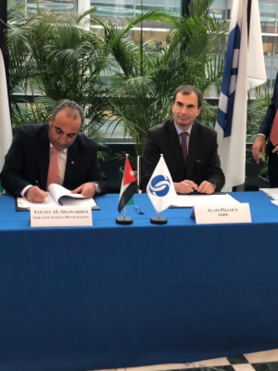 المدينة نيوز :- وقع أمين عمان الدكتور يوسف الشواربه و نائب رئيس البنك الأوروبي للإعمار والتنمية ألان بيلوكس اليوم في لندن اتفاقية تحصل الأمانة بموجبها من البنك على قرض بقيمة 3 مليون و100 الف دينار ، ومنحة بقيمة 3 مليون 700 الف يورو .