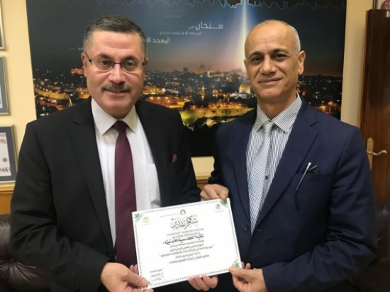 وسلم الدكتور الطراونة الدروع وشهادات التقدير لنقابة المهندسين، ومركز الجسر العربي للدراسات الهندسية.