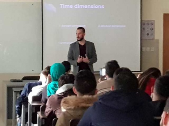 وقام الطالب عمر بسيسو، من كلية الهندسة خلال الجلسة بعرض تناول فيه أهم المقومات التي يتمتع بها الاشخاص القياديون، اضافة لاعطاء شرح حول الاستراتيجيات الفعالة التي يصر هؤلاء على اتباعها لتحقيق اهدافهم.