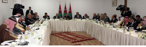 وحضر اللقاء رئيس الديوان الملكي الهاشمي الدكتور خالد الكركي، ومستشار جلالة الملك لشؤون العشائر سيادة الشريف فواز زبن عبدالله، والمستشاران في الديوان الملكي الهاشمي عامر الحديدي ويوسف العيسوي، وعدد من المسؤولين.