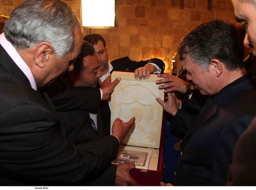 وقدم النائب سامي الحسنات لجلالة الملك وثيقة ولاء وانتماء باسم أهالي لواء البترا تضمنت بنودا تؤكد ان الهاشميين وعميدهم جلالة الملك عبدالله الثاني هم رمز عز الاردن وكرامته واستقراره .