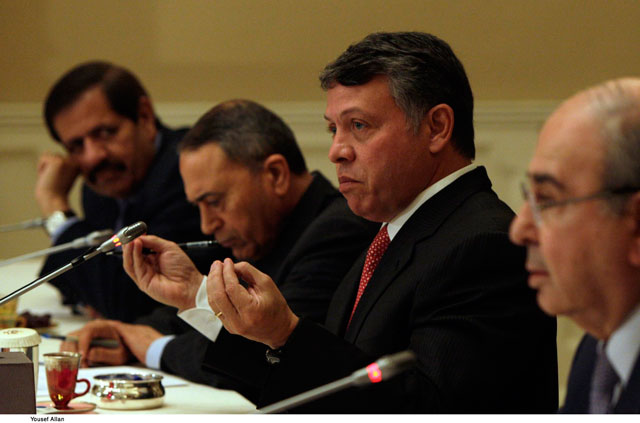 وشدد جلالته، خلال اللقاء الذي جرى في الديوان الملكي الهاشمي، على ضرورة أن يدرك الجميع أنه في غياب الحوار العقلاني والمنطقي يلجأ الناس للشارع ويفتح المجال للتوتر، مؤكدا "أننا لا نخشى الإصلاح، وسنحترم توصيات لجنة الحوار الوطني فيما يتعلق بأية تعديلات دستورية مرتبطة بتطوير قانون الانتخاب والحياة النيابية والحزبية".