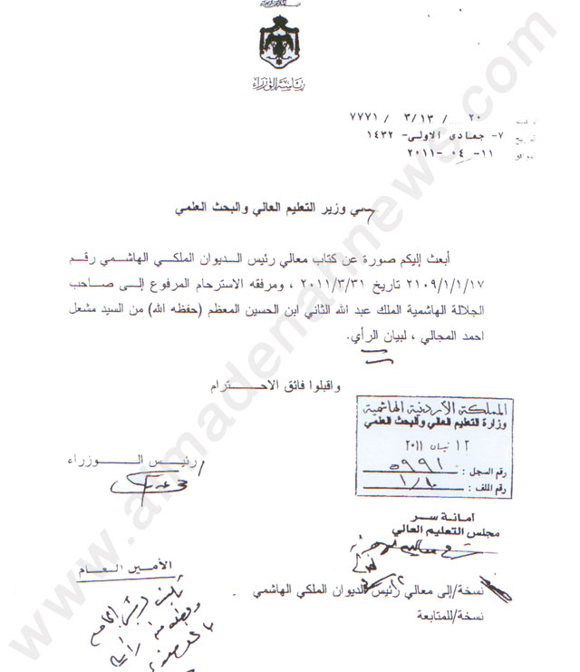 وبعد أن تسلم معالي الدكتور خالد الكركي الكركي كتاب المجالي حوله إلى رئاسة الحكومة ..