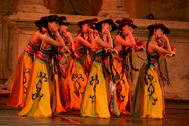 المدينة نيوز - خاص: ابهرت فرقة جامعة شنغهاي الصينية جمهور المسرح الشمالي في اول ايام حفلات مهرجان جرش مساء الخميس، فعلى مدى ساعة ونصف الساعة قدمت الفرقة تسع لوحات راقصة أداها ثلاثة وعشرون شابا وفتاة، عكسوا سحر الثقافة الصينية وتأثيرها المبهر على من يتابعها، بحضور رئيس هيئة مديري المهرجان اكرم مصاروة والمستشار الثقافي الصيني في السفارة الصينية في عمان.