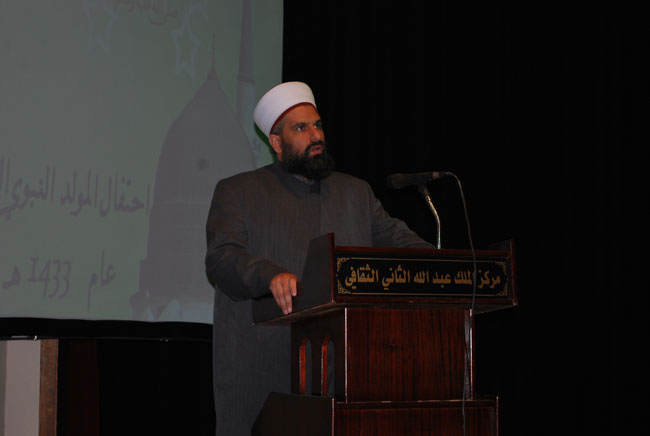 وأكد فضيلته على أهمية الوقوف جنبا إلى جنب مع القيادة الهاشمية الحكيمة في عملية الإصلاح والحفاظ على مقدرات الوطن وعلى نعمة الأمن والأمان وأن الإصلاح لا يعني بأي حال من الأحوال إثارة القلاقل والفتن وزعزعة الأمن والاستقرار لتحقيق مآرب فئوية ومطامع شخصية.. واختتم كلمته بتقديم التهنئة لسليل الدوحة الهاشمية الملك عبدالله الثاني ابن الحسين حفظه الله ورعاه والأمة العربية والإسلامية بمناسبة ذكرى مولد سيد الخلق صلى الله عليه وسلم سائلا المولى عزوجل أن يعيد هذه الذكرى على الأمتين العربية والإسلامية بالعزة والنصر.