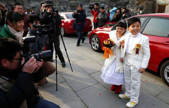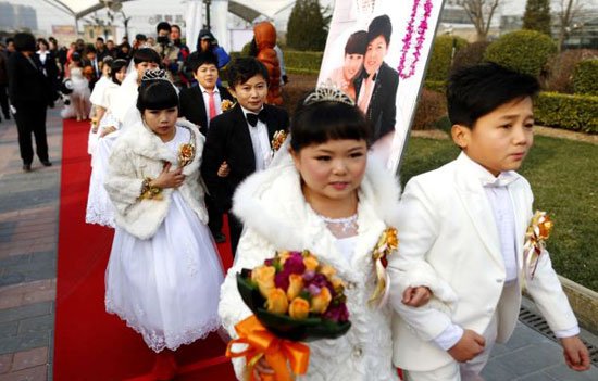 بالصور.. حفل زفاف جماعى لـ 7 أقزام فى بكين