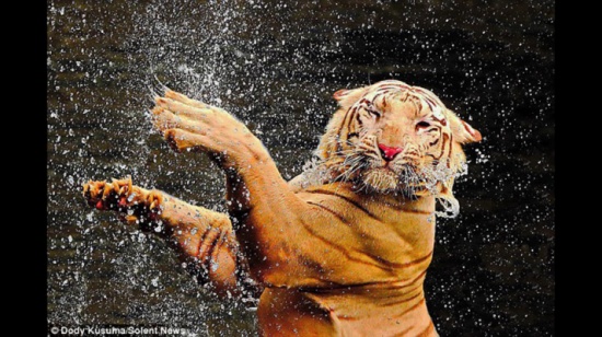 ورُصدت هذه النمور في حديقة للحيوان في العاصمة الاندونيسية جاكرتا، وهي تستخدم مخالبها لرش أجسامها بالماء، وجعل فرائها رطبا بشكل دائم من أجل مقاومة درجات الحرارة العالية، التي تجاوزت 30 درجة مئوية.