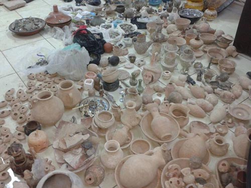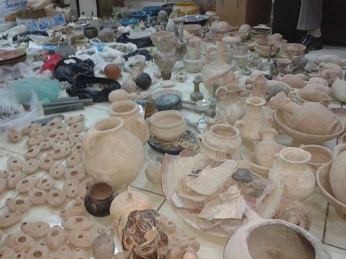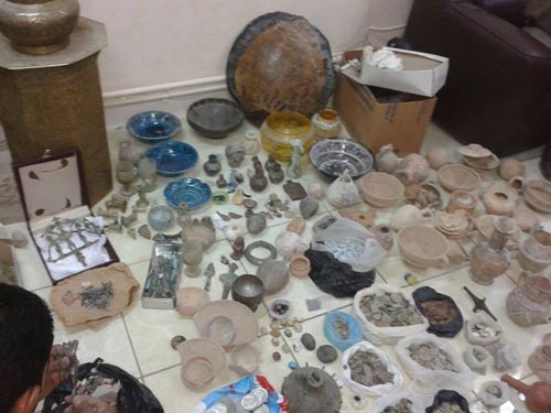وتتضمن الآثار التي تم ضبطها خزفيات وجرار فخارية وأواني معدنية وتماثيل لغزلان وغيرها .