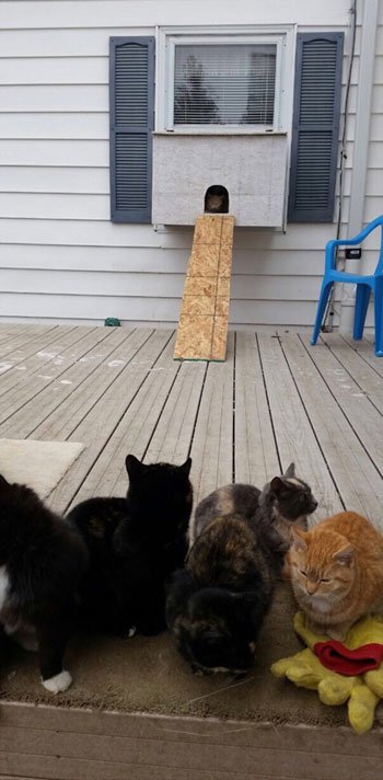 بالصور.. مزارع أمريكي يضع حوضا بمنزله لتدفئة القطط الضالة