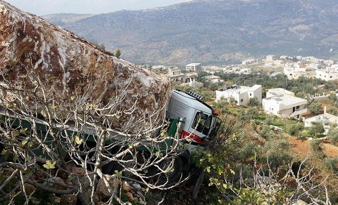وقال شهود ان شاحنة كانت تحمل الصخور من مقلع حجر في المنطقة تدهورت ظهر السبت على طريق منحذر مؤدي الى حي نمر في كفرنجة ، لكنها ارتطمت في صخرة اوقفتها ومنعت وصولها الى منازل قريبة من الموقع .