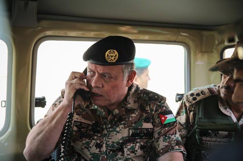 تابع جلالة الملك عبدالله الثاني، القائد الأعلى للقوات المسلحة - الجيش العربي، بحضور رئيس هيئة الاركان المشتركة الفريق اول الركن مشعل محمد الزبن، وسمو الامير فيصل بن الحسين، في احد ميادين التدريب الاثنين،مجريات التمرين التعبوي الذي نفذه اللواء المدرع / 91 الملكي ، احد تشكيلات فرقة الملك عبدالله الثاني المدرعة / 3 .