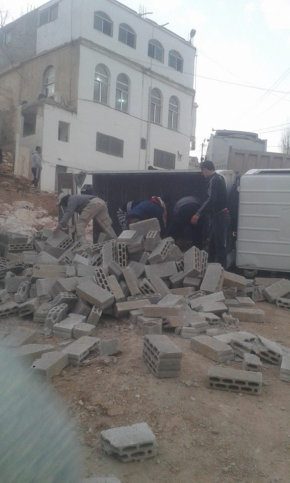 بالصور .. اصابة في تدهور ديانا محملة بالطوب بجرش
