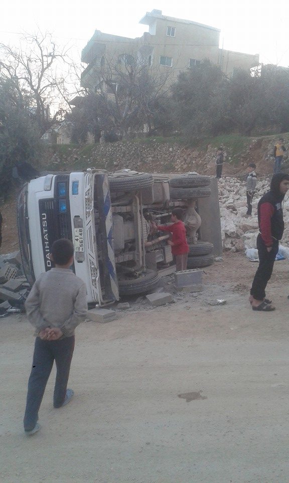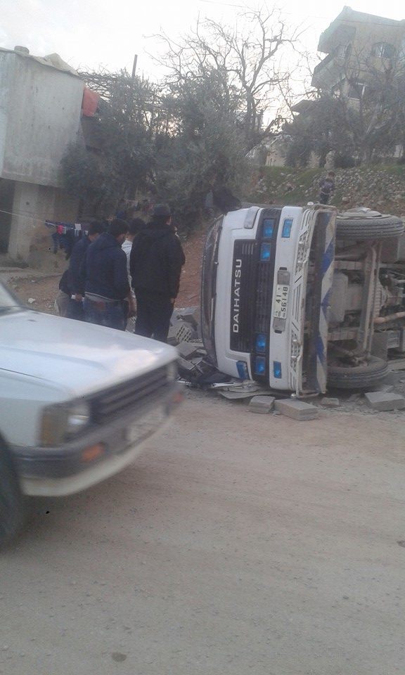 وتعود اسباب الحادث للحمولة الزائده وفقدان السيطره على السيارة اثناء محاولة الانعطاف.