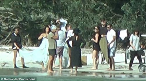 وقد التقطت كاميرات الباباراتزي صورا غامضة لكيم وهي تستكمل جلستها التصويرية لصالح المجلة على الشواطئ.