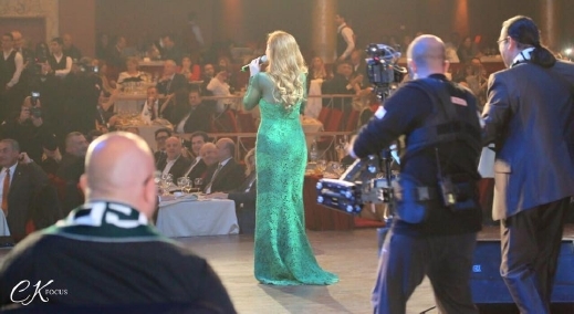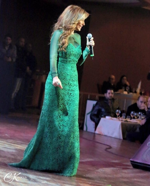 المدينة نيوز:- أحيت الفنانة اللبنانية يارا حفلا غنائيا بمناسبة العشاء السنوي الذي أقامه نادي الحكمة في كازينو لبنان في بيروت، قامت خلاله بتقديم باقة من اروع أغنايها وتألقت بإرتداء فستان أخضر اللون. بالاضافة الى ذلك قام رئيس النادي نديم حكيم في نهاية الحفل بتكريم الفنانة يارا وتقديم درع شرف لها..