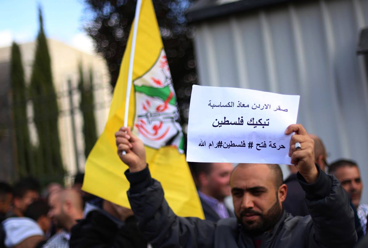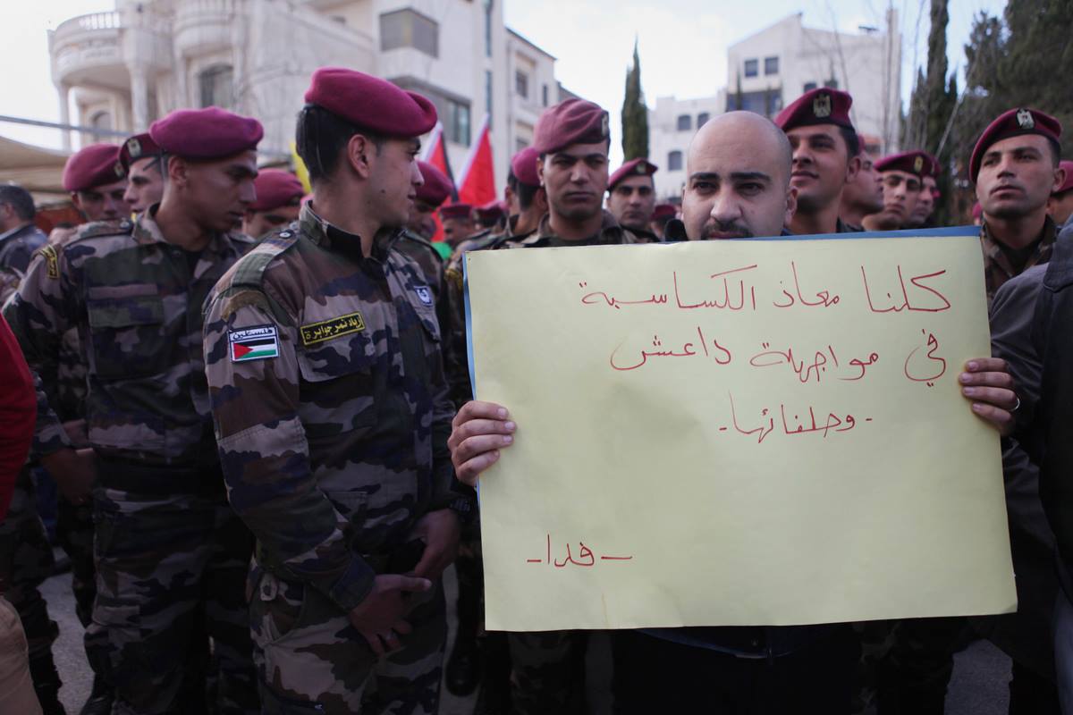 وكان مئات من المواطنين قد توافدوا إلى مقر السفارة، حيث شارك أعضاء اللجنة المركزية لحركة فتح واللجنة التنفيذية لمنظمة التحرير ونواب من المجلس التشريعي الفلسطيني ومدير عام المخابرات الفلسطينية ماجد فرج، ونائب الأمين العام للجبهة الديمقراطية لتحرير فلسطين قيس عبد الكريم، والناطقان باسم حركة فتح احمد عساف، وعدد من ممثلي مؤسسات المجتمع المدني والجامعات في الوقفة للتنديد بقتل الشهيد الكساسبة وتقديم واجب العزاء للسفير الأردني لدى فلسطين خالد الشوابكة.
