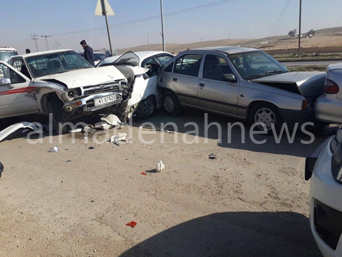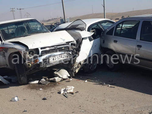 بالصور : اصابة سيدة في حادث تصادم 4 مركبات في الزرقاء