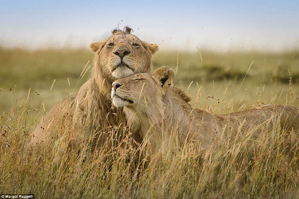 ونشرت صحيفة دايلي ميل البريطانية بعضاً من أجمل لحظات الحب بين الحيوانات التي التقطها مصور الحياة البرية مارغوت راغيت بالمحمية الوطنية في كينيا، حيث شوهد أسد ينظر باهتمام إلى أنثاه، وكأنه يعبِّر لها عن "شوقه وحنينه".