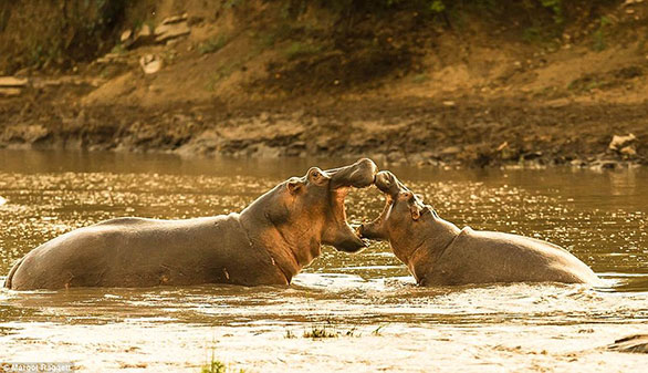 كما التقطت عدسات المصورين "قُبلة" بين فرس النهر وزوجته أثناء تفقدهما مياه البحيرة، كما ظهر أسد وأنثاه يتعانقان، وحيوانات أخرى تبدو وكأنها تعيش نفس شعور البشر العاطفي.