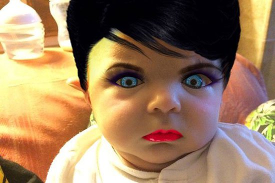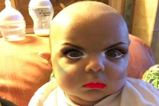 بالصور: أم مجنونة تزين ابنتها ذات الـ 7 أسابيع بمكياج كامل