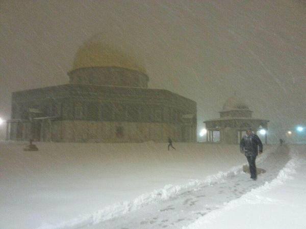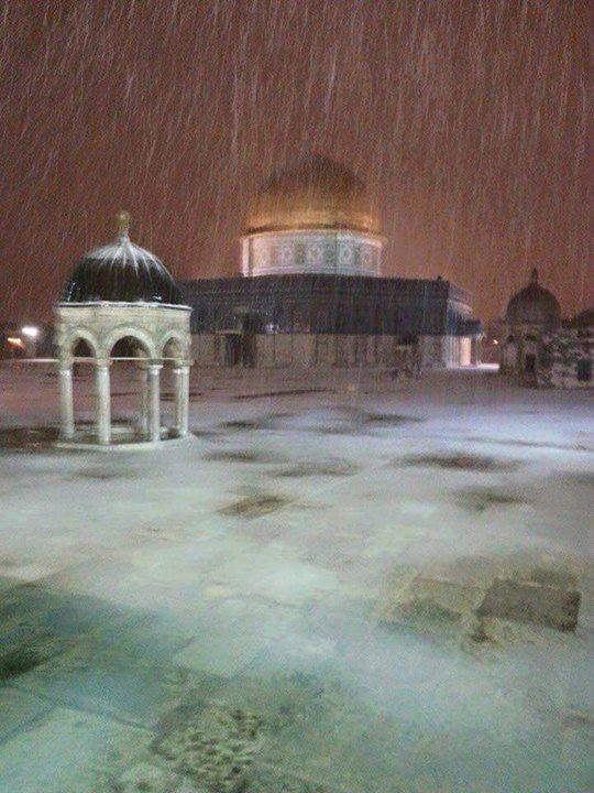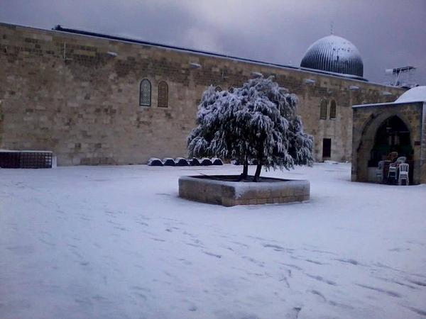 أما المسجد الأقصى والذي امتلأت ساحاته وقبابه بالثلوج، فقد تسببت العاصفة بسقوط أكثر من 7 شجرات معمرة فيه، ويعمل حراس وسدنة الأقصى على تفقد الساحات وتنظيفها قبل ساعات من موعد صلاة الجمعة.